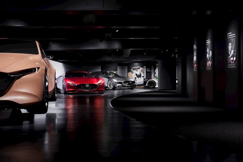 The museum has 10 different exhibit zones with decor and lighting that match each zone’s theme. The entire museum has been designed to provide visitors with a narrative experience of Mazda’s vision for the next century and the thoughts that have gone into the past 100 years of Mazda manufacturing.