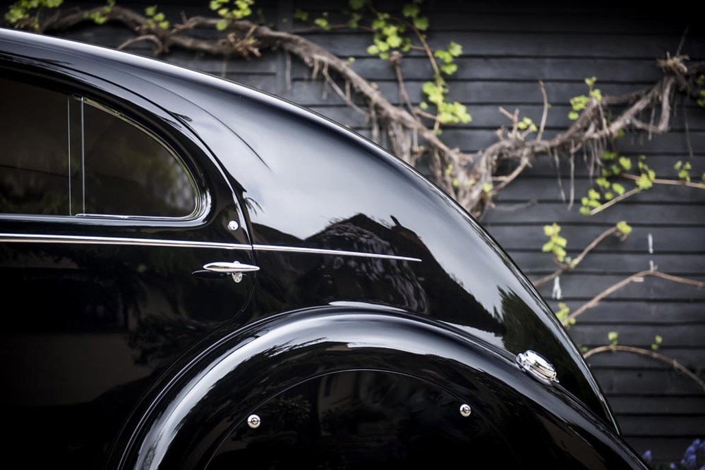 Its most striking feature was a front-sloping windscreen that made the car 15 per cent more aerodynamically efficient than the standard configuration. The motor car’s slippery nature was also helped by the enclosed spare tyre and swept tail.