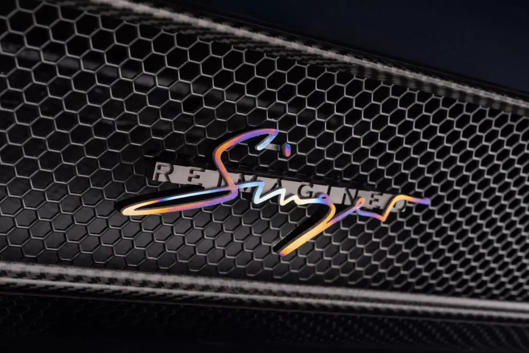 Inside, Singer’s trademark craftsmanship is pushed into more industrial territory. The seats are trimmed in Pebble Grey leather with Pearl Grey Alcantara centres, offset by Champagne-coloured piping. A redesigned steering wheel and custom floating gauges reinforce the one-off nature of the build.