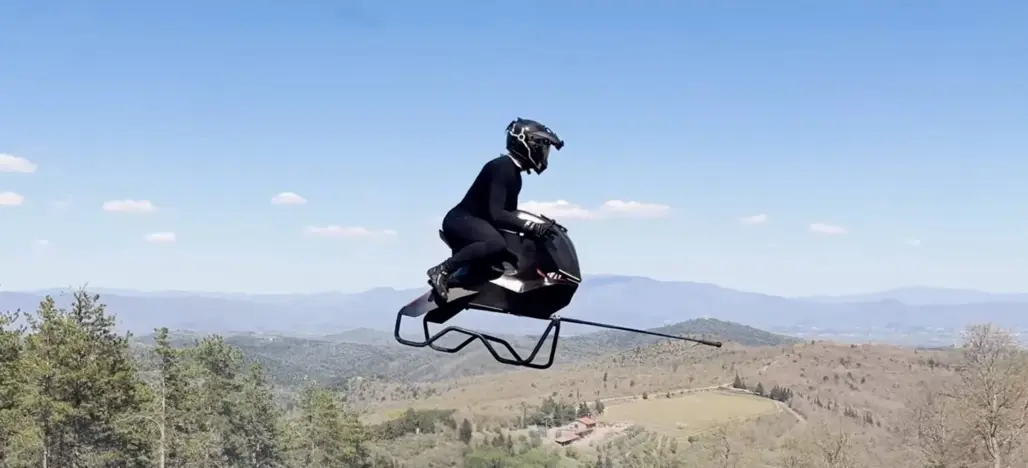 The brainchild of Polish engineer Tomasz Patan (yes, the same one behind the Jetson One eVTOL), the Airbike trades propellers for an undisclosed jet propulsion system. Patan hasn’t spilled the technical details just yet, but he has confirmed a top speed of 200km/h and a stabilisation setup that promises hands-off hover and intuitive control.