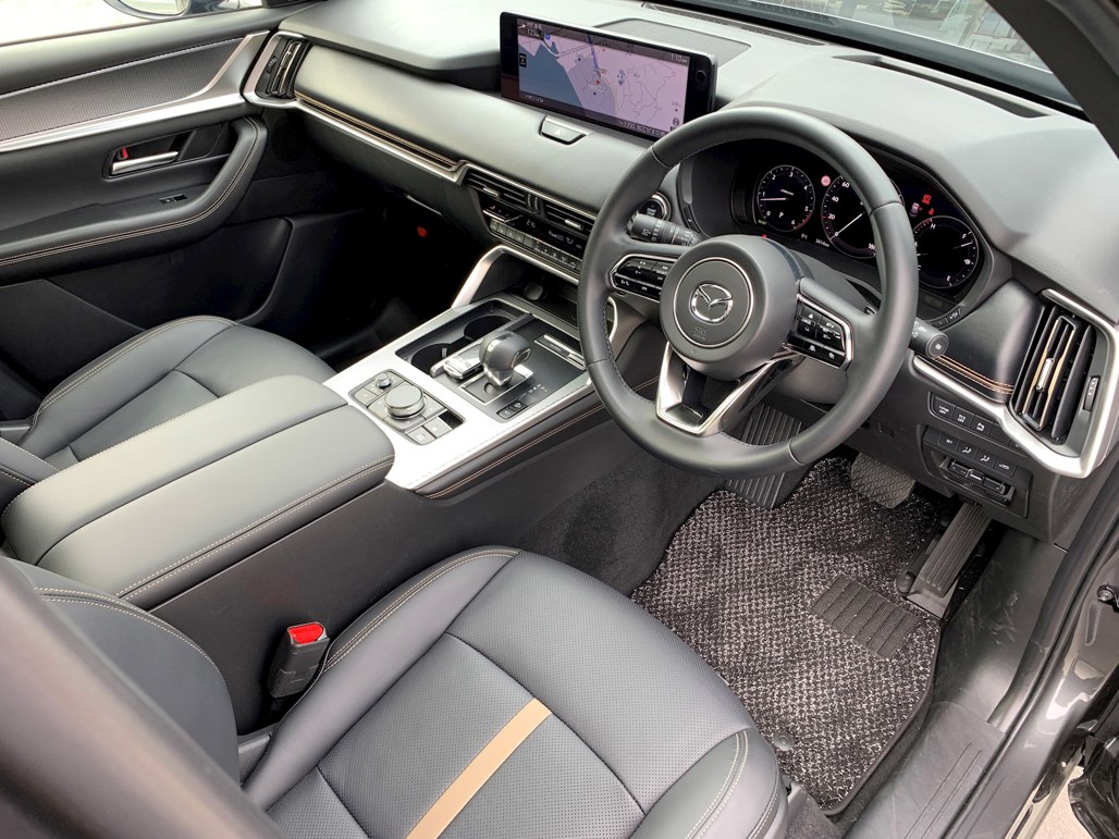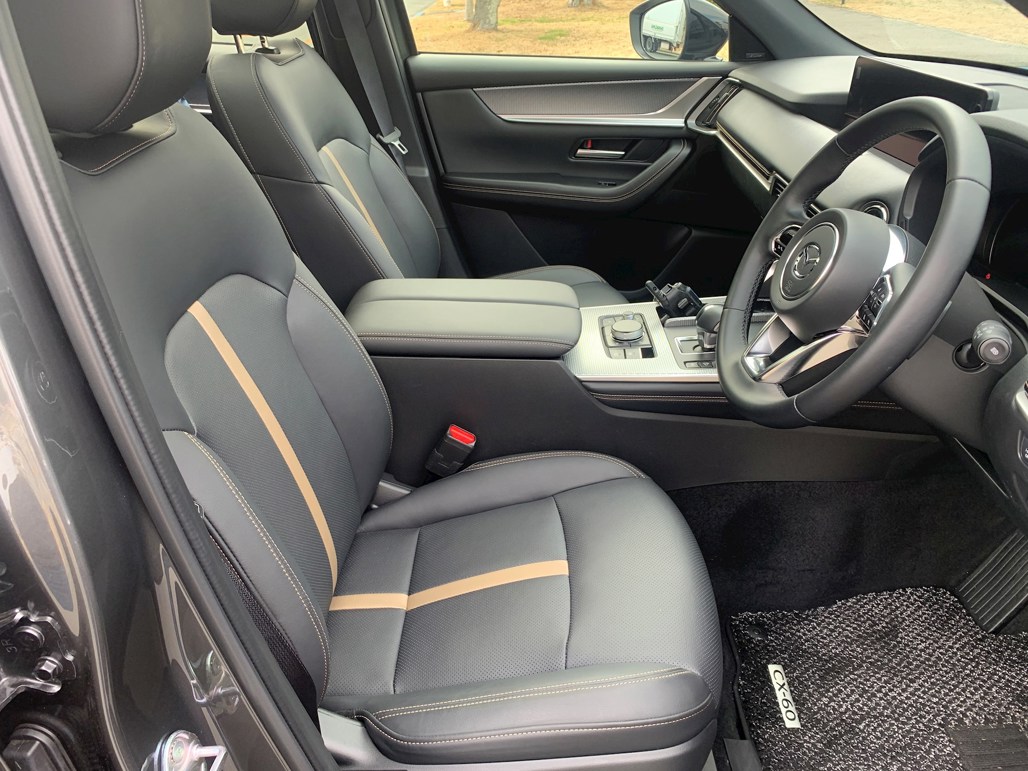 The brand new CX-60 is the first vehicle out of the new ‘large product group’, with rear bias and a new 3.3-litre inline six-cylinder, a layout known for its smoothness. Though diesel is offered and the model we drove, we would speculate seeing both the 3.3-litre petrol turbo six-cylinder with 48v mild hybrid, and the 2.5-litre petrol turbo four-cylinder with plug-in hybrid (PHEV) bound for NZ.