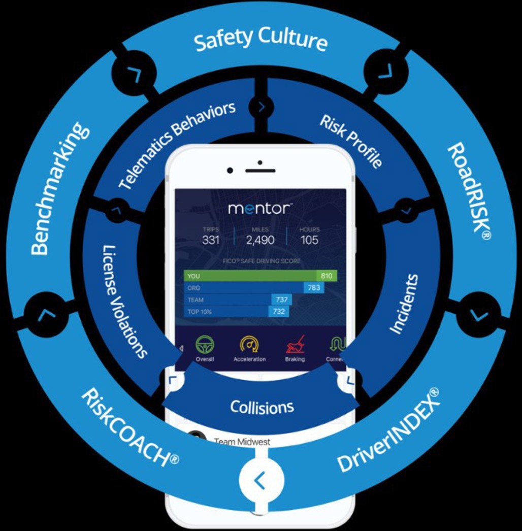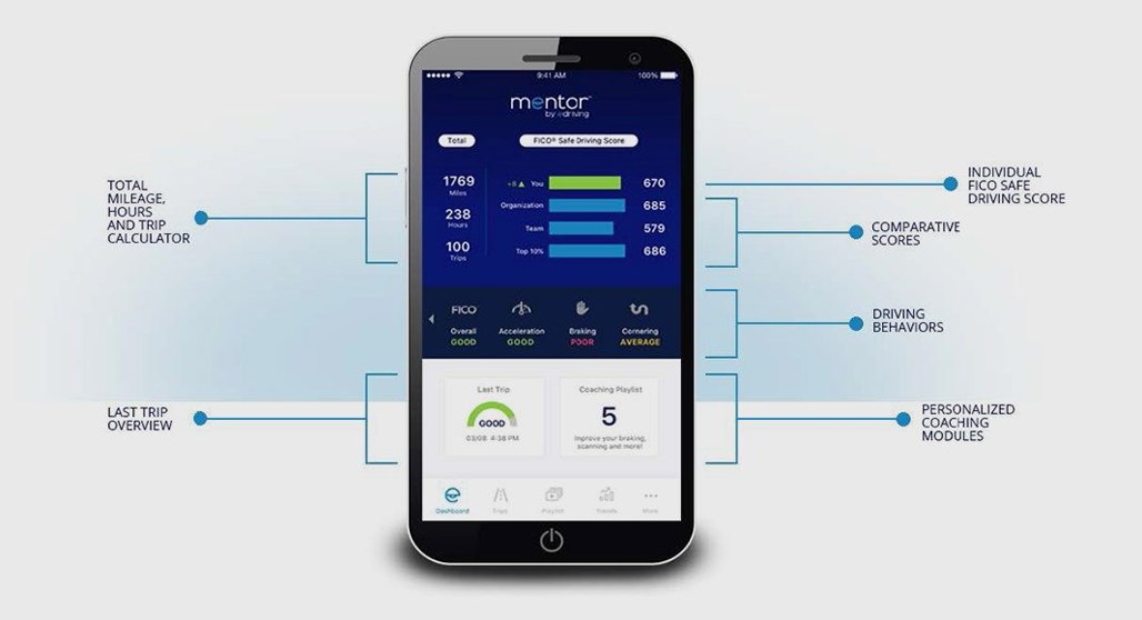 Mentor by eDriving monitors driving behavior and assigns a FICO Safe Driving Score (similar to a credit rating) based on a driver’s likelihood to be involved in an accident. It then helps to reduce risky behaviour by prescribing training modules and coaching directly to drivers.