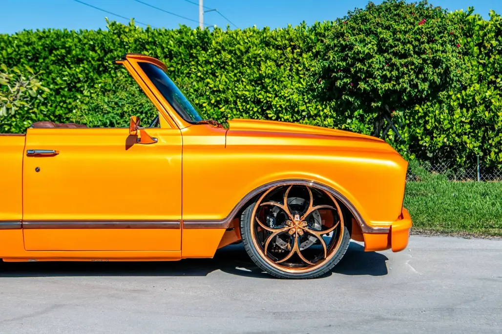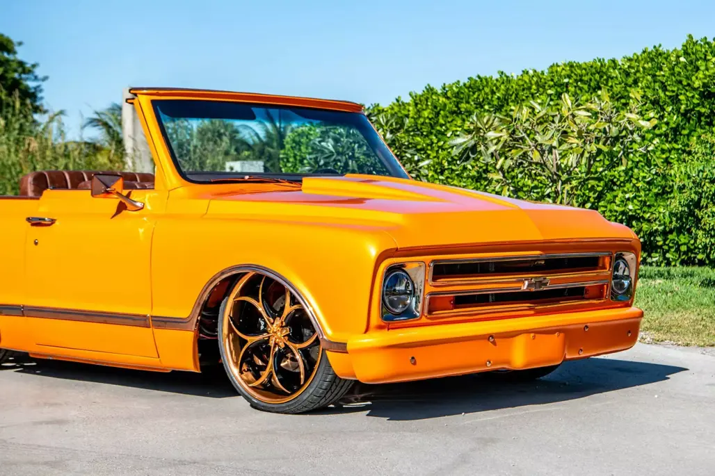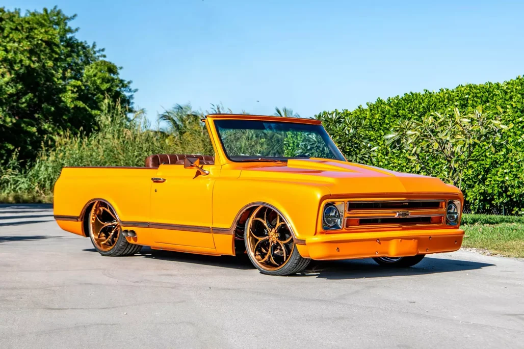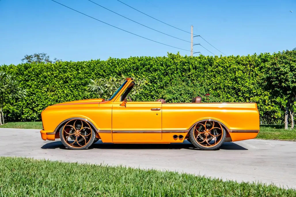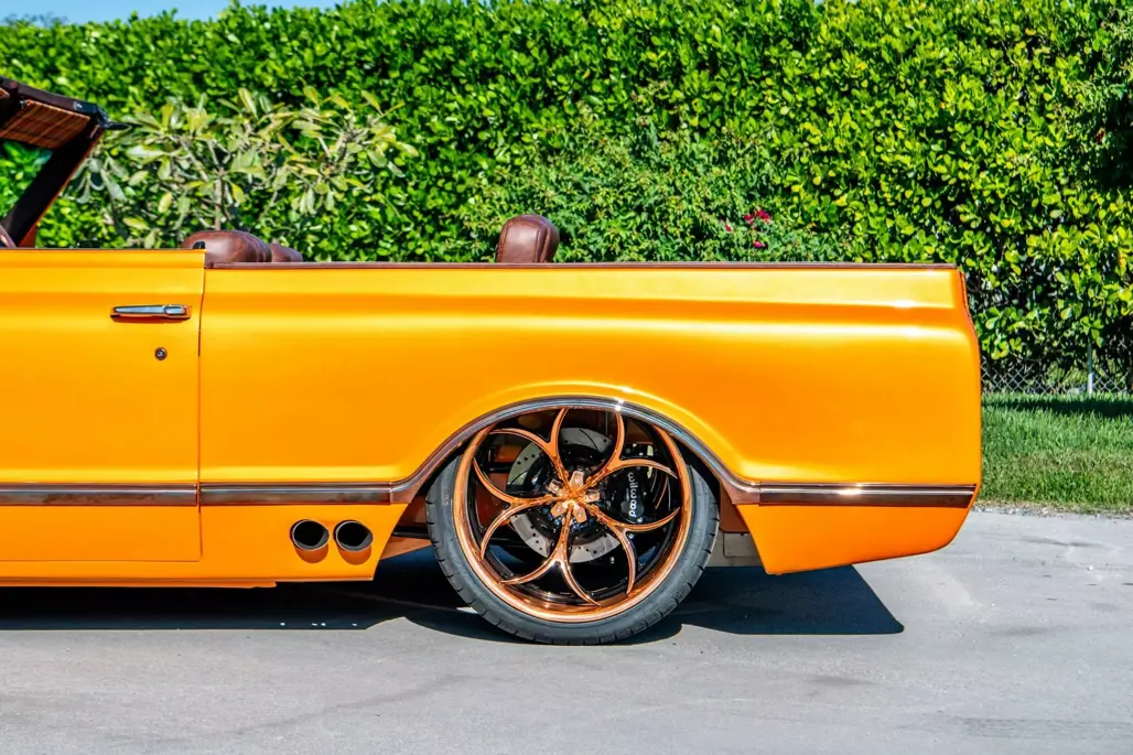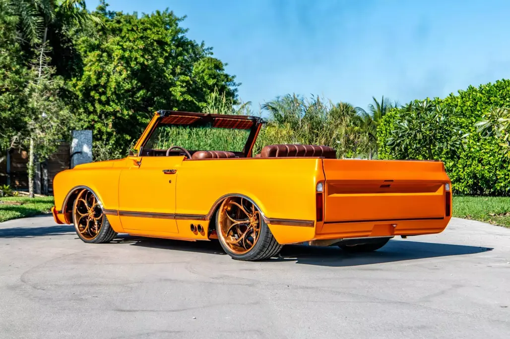 Rather than chasing trail credibility, the build trades articulation for asphalt appeal. The result is a two-door convertible pickup that sits impossibly low, looks impossibly expensive and sounds like it should come with a warning label.