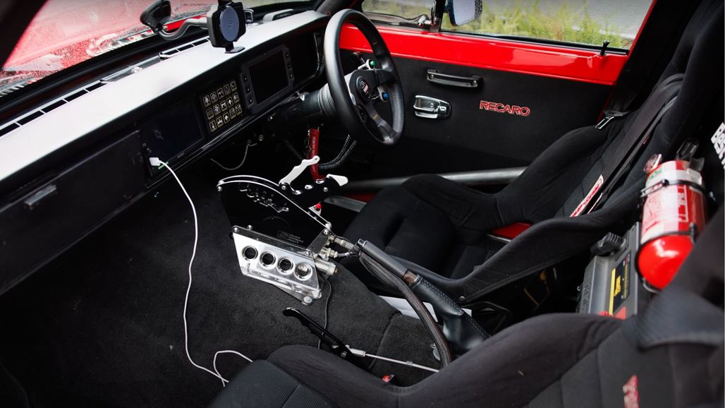 The interior mirrors the exterior's blend of classic and contemporary. A Motorsports 3D printed dashboard, bucket seats, and a custom cage seamlessly integrated within the vehicle's body, add a touch of modern-day racing aesthetics to this vintage marvel.
