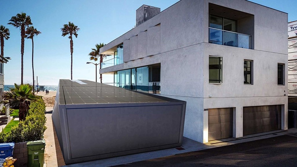 Just like the Cybertruck, the building is shaped like a wedge, and runs exclusively on electricity. This comes from a set of roof-mounted solar panels that feed down to a bank of batteries.