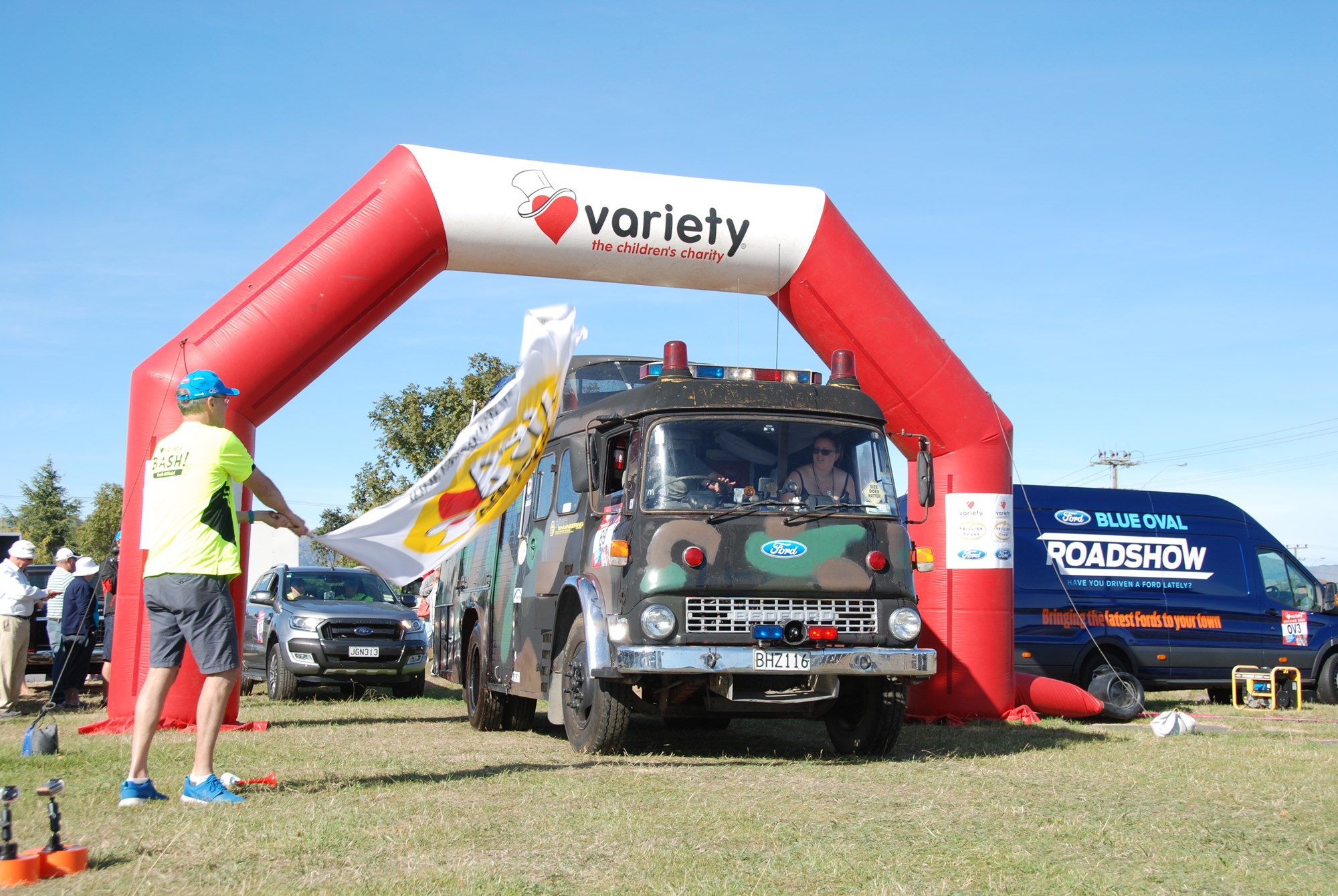The 26th Variety Trillian Bash was today (Sunday) joined by the two South Island crews - the Christchurch Airport Top Gun Team and the Bash Bakers – which led the cavalcade to breakfast at the Blenheim Farmers Market.