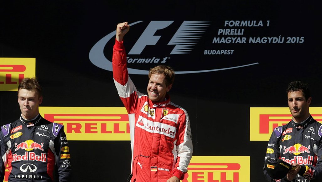 BUDAPEST, Hungary (AP) — Ferrari driver Sebastian Vettel won an action-packed Hungarian Grand Prix for the first time on Sunday, while Nico Rosberg saw his chance to catch Lewis Hamilton in the title race disappear with a puncture near the end.
