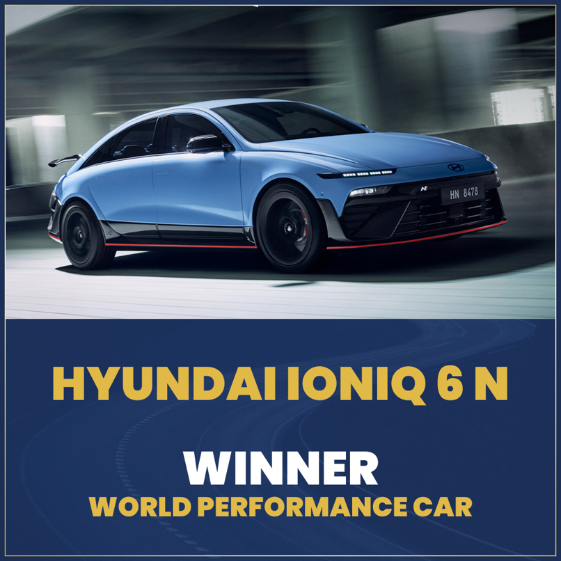 This is the second World Performance Car win for Hyundai, with the Hyundai Ioniq 5 N being the 2024 World Performance Car. The 5 N and 6 N share their underpinnings, with the 6 N being powered by a dual motor AWD powertrain and an 84kWh battery to produce a total of 478kW/770Nm. It can accelerate to 100km/h from a standing start in 3.2 seconds.