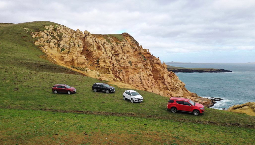 Five Holden vehicles have been shipped 828km to the island for a fortnight launch event for the New Zealand media. Included in the Chatham-based SUV lineup are the Trax, Equinox, Trailblazer, Acadia and the Commodore tourer with AWD.