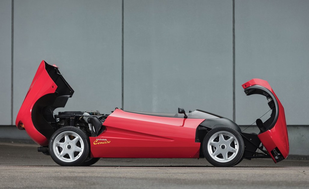It started life as a Ferrari 328 GTS, before a gent named Bernd Michalak got his hands on it. The German scribbler and his wife Jutta started his own coach-building company — Michalak Design — in 1979. Since then he's designed several curious things, including accessories for the Smart Car, a convertible and wide-bodied Opel Corsa (ahem, Holden Barina) called the 'Corsaspider', and soft-top mechanisms for the first-generation Viper and the Ferrari 550 Barchetta.