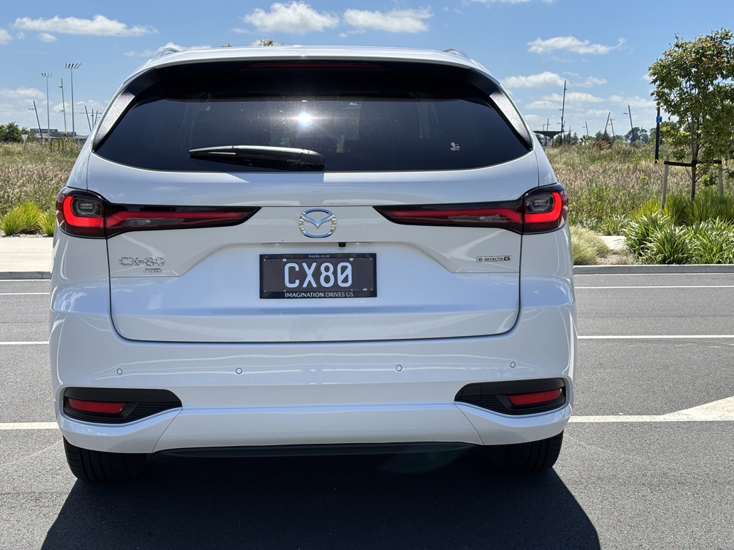 This, you could say, was the Mazda SUV we’d been waiting for, the six-cylinder CX-80. Completing the evolution from the previous CX-8 and CX-9 models to the new CX series, we’ve previously driven the 2.5-litre PHEV, both the CX-60 and CX-90, and now the complementing CX-80 has arrived with a 3.3-litre inline six-cylinder, mild hybrid, all-wheel drive and seven seats.