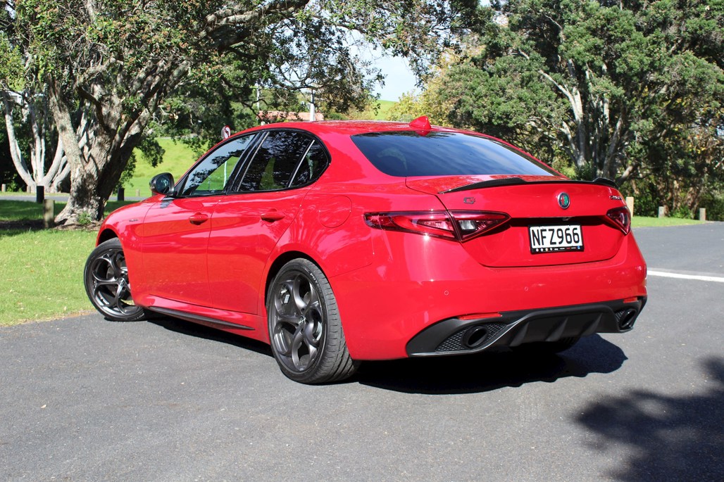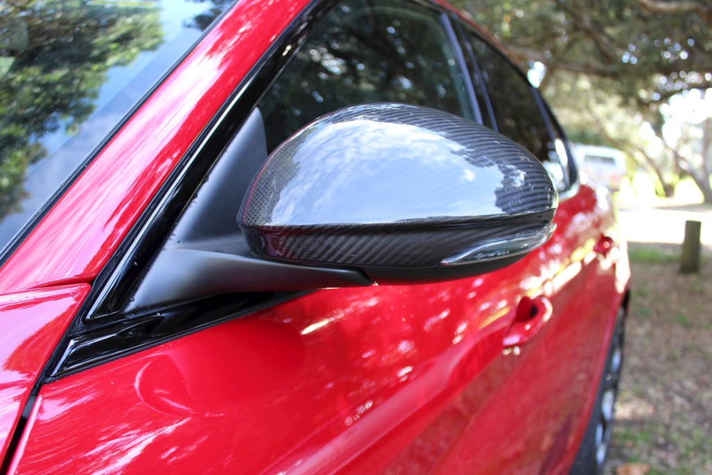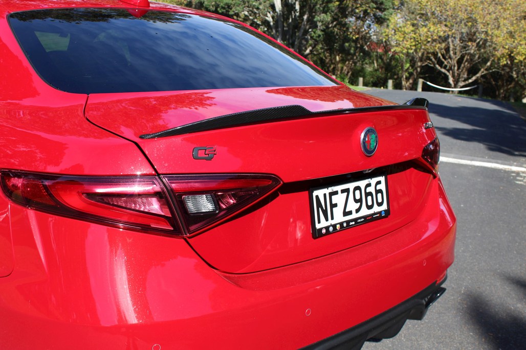 As the moniker suggests, this sedan is now dripping in carbon fibre additions, inside and out. It gets the Quadrifoglio’s’s carbon spoiler, carbon side skirts, carbon mirror caps, and a carbon grille surround at the front. It also gets the flagship model’s darkened 19-inch wheels, which work with the carbon additions perfectly.