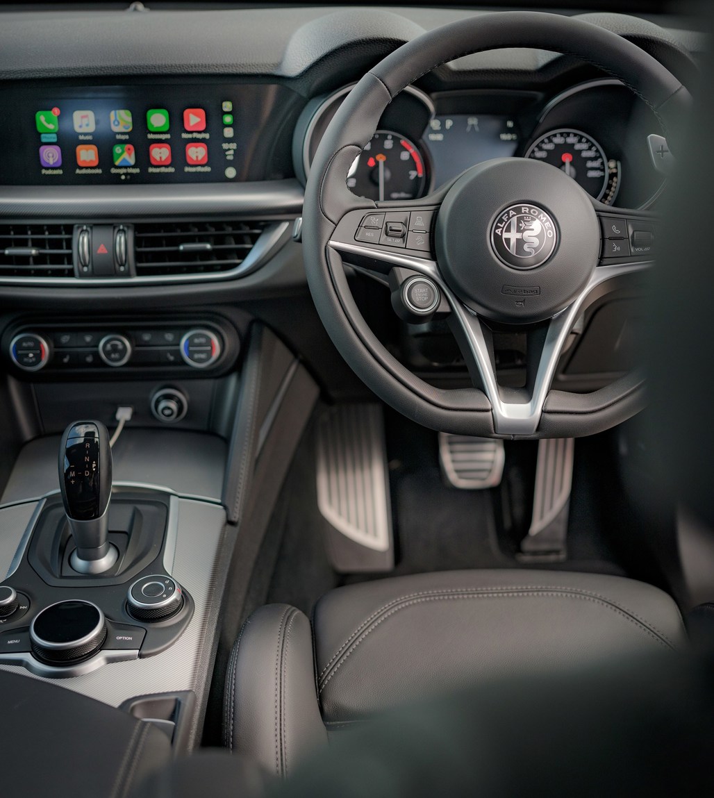 I loved the 8.8-inch infotainment system with satellite navigation set into the narrow dash but it lost points for not being touchscreen — here’s something for the “to do” list when the Stelvio gets a facelift.
