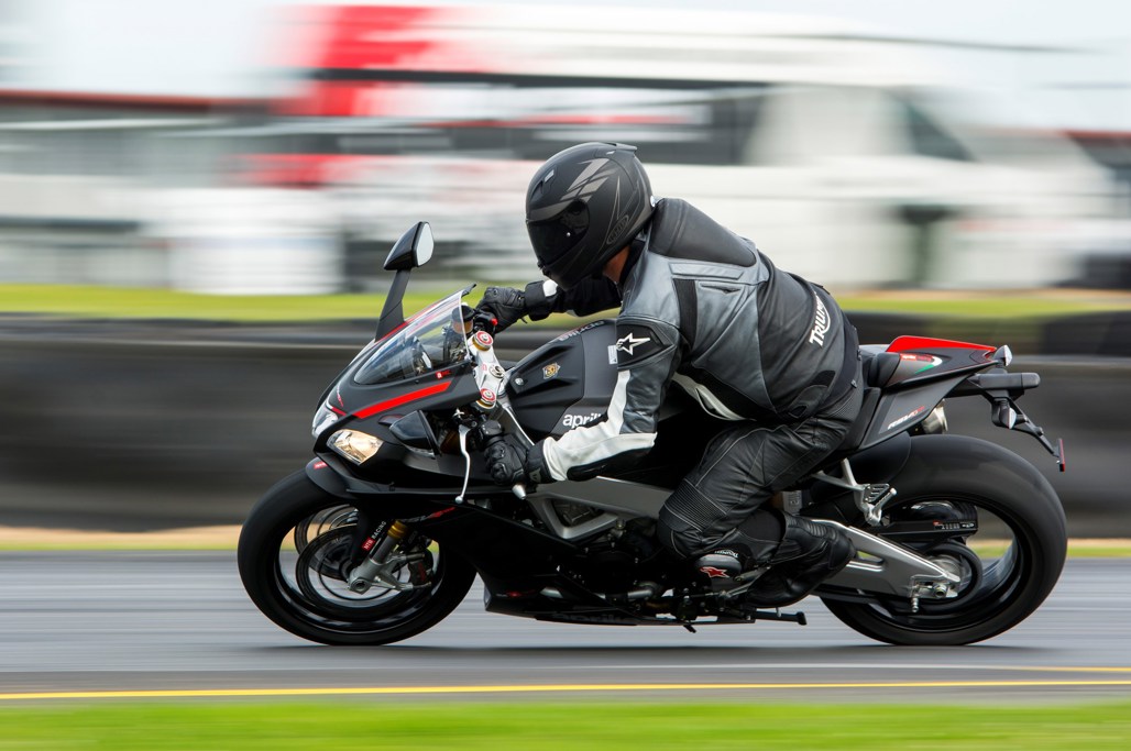 Swinging a leg over the RSV4 at Hampton Downs, you can tell it is a serious superbike.