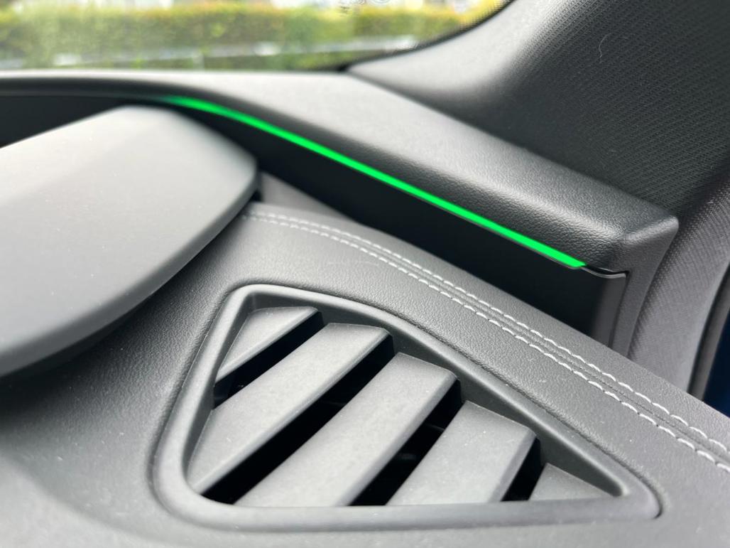 The 270kW max charge rate minimises that wait time, filling the 95kW battery. AC charge ports are located on both sides, with the DC port on the left, so less of a chance for a long charge lead to trip someone up at home. Plus, when approaching public charge points and/or stopping, the screen handily prompts you to open the charging flap, which is important as they’re electrically operated and can be a bit tricky with exterior touch-operation. Charging level is also easily identified by the strip of green mood lighting that spans the dash.