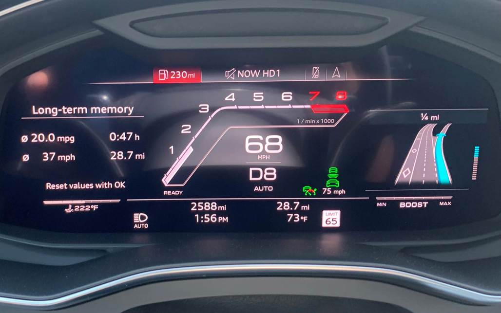 It’s fast and sounds super thunderous thanks to reduced sound insulation and flaps in the mufflers that open in different modes, such as pressing the RS button on the steering wheel, to release the beast: through a conventional eight-speed automatic, there is also a launch control mode where the dash animation lights up and revs flare to 2500rpm with both pedals mashed, and it advises the ideal moment to launch. There isn’t the dual-clutch ferocity but nor is ever which-gear-would you like uncertainly of some dual clutch gearboxes, with the sturdy auto doing a sterling job to throw the RS6 to 100km/h in just 3.4 seconds on its way to a top speed of 302km/h (with certain safety provisions such as the ceramic brakes), all the while thundering like a 1970s muscle car as the V8 gargles as loud as laws allow. Check out our video for a sample.