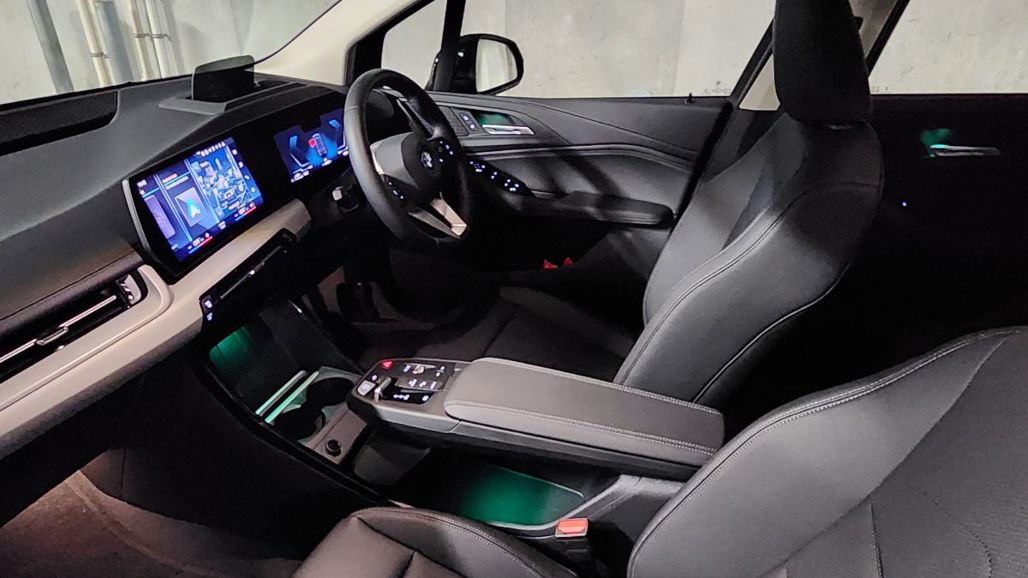 The 225e also has BMW’s IconicSounds EV noise generator in the cabin, just like its full battery electric vehicles (BEVs). It runs in EV mode, but also when you’re accelerating hard with the petrol engine running. So you get the thrummy three-cylinder soundtrack and the spaceship EV noise singing along together, which is weird. But good-weird.