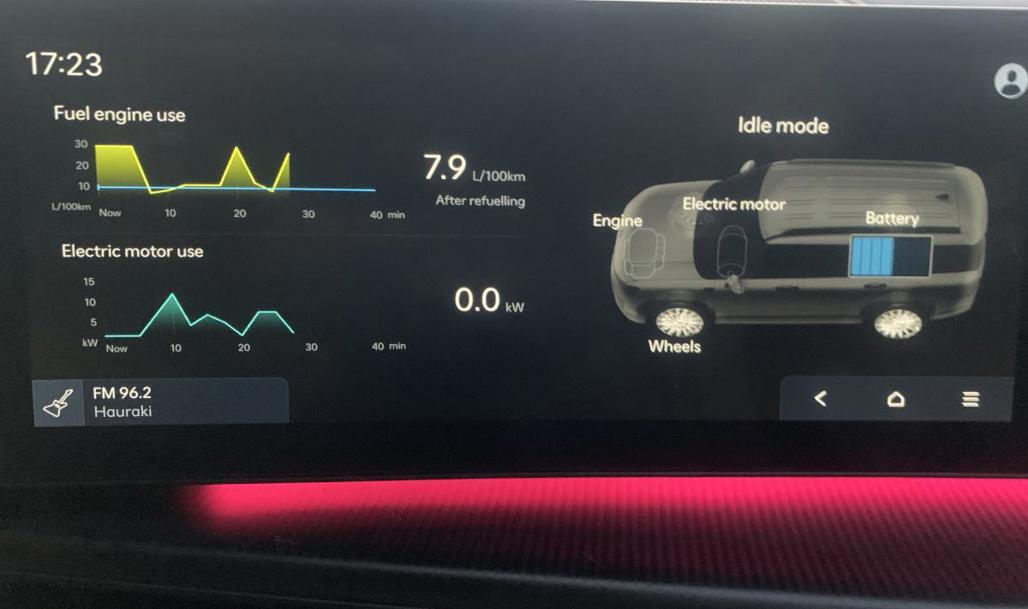 But, and there’s a but, it does need to work harder at higher speed, hauling heavier loads. With lots of passengers on board, and/or at higher motorways speeds, the hybrid has less input and both performance and economy dip a bit as the small engine audibly works harder: we struggled to just get 7.9l/100km on a 500km highway trip, only seeing it dip under 8 around the suburbs.