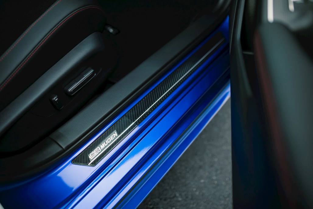 This variant gets extra spoilers at both ends, sill garnishes and Mugen emblems inside and out. New forged wheels drop 4kg of unsprung mass at each corner. There’s also a stunning new Premium Crystal Blue colour making its local debut.