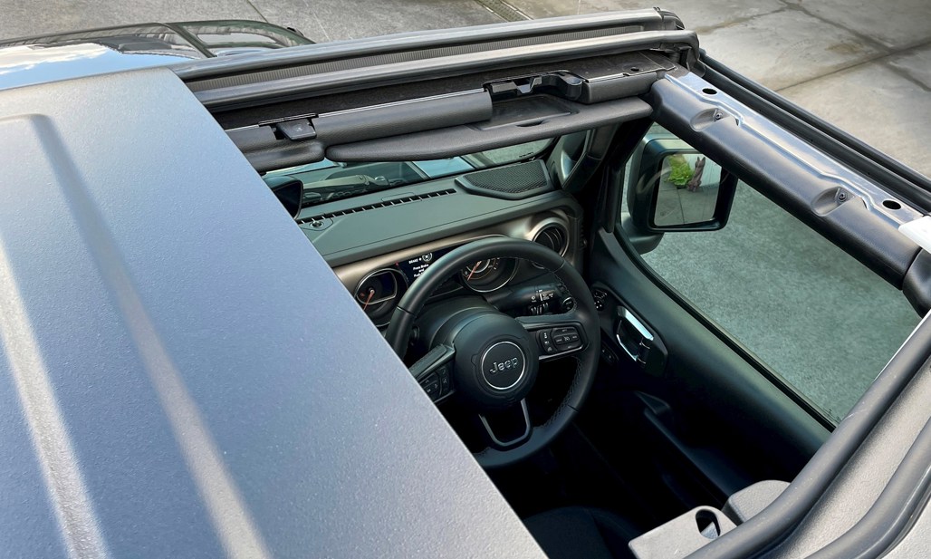 Know what? Some of that stuff is preferable. The cloth seats are more comfortable and supportive than leather for a vehicle like this, while the smaller wheels make for superior ride. The downsized wheels also look more businesslike, as do the black guards and removeable hard-top (two quick-release panels over the front seats, or you can remove the entire thing). The rugged, $92,990 Rubicon also has black guards/roof and 17in rims, by the way. It’s the right look.