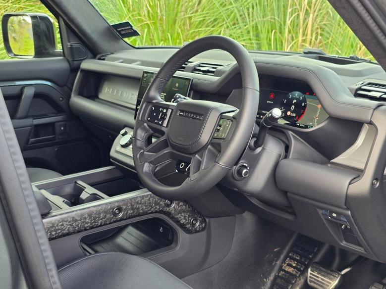 While there is surprisingly little badging that shouts at you just how special the Octa is, there is quite a lot of chopped carbon fibre in the Edition One version we drove, something I’m not personally a fan of. The overall effect is a bit cheesy for my tastes, but the interior is still beautifully made and feels every bit as robust as a normal Defender. It is, however, optional so just... don’t.