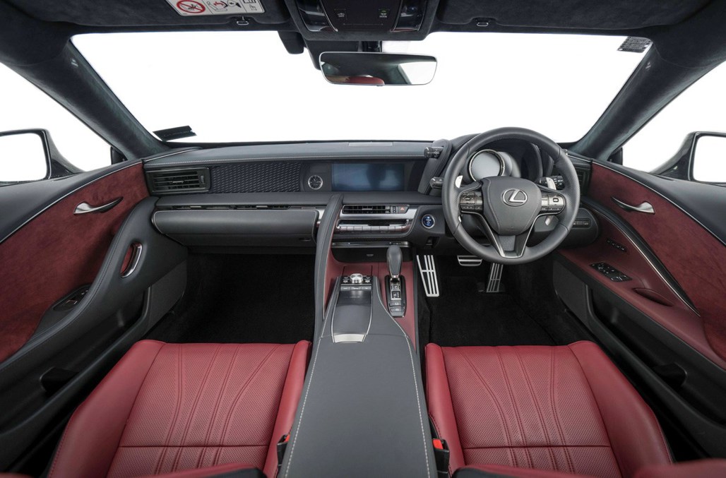 Eight airbags, a reversing camera, front and rear park sensors, blind spot monitor and rear cross traffic alert are standard and the Lexus Safety System+ comprises all-speed Dynamic Radar Cruise Control, Pre-crash system with autonomous braking, Lane Keeping Assist, Lane Departure Alert and Automatic High Beam control. The Lexus LC is available in 12 exterior colours.