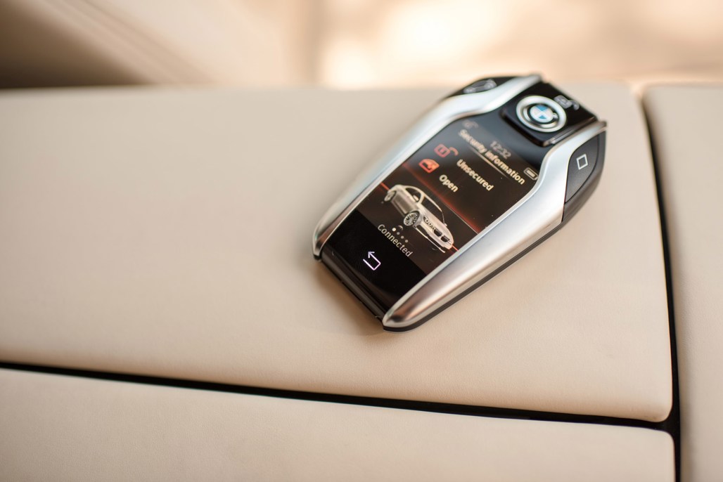 The driver can control the car’s progress forwards into or in reverse out of a space using a full-colour BMW Display Key.