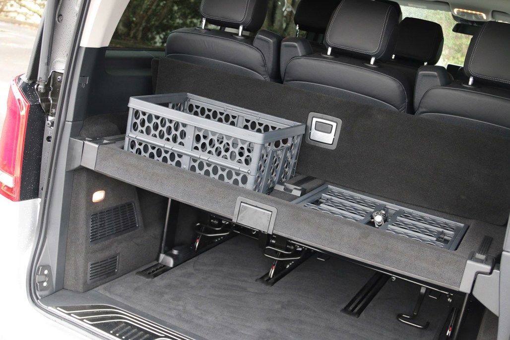 But the highlight of the back end has to be the brilliant rear “organiser” that features a pair of collapsible boxes in the removable parcel shelf.