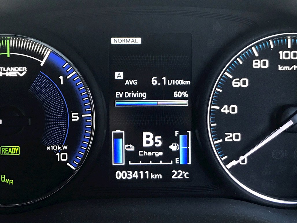 To some extent, a Plug-in Hybrid Electric Vehicle requires (at least welcomes) a degree of driver input to make the most of the available electrical energy. It requires being plugged in to charge it, and being a proxy early adopter (part of the job of testing brand new cars), and unlike a drive-and-ignore conventional hybrid, our Outlander also offers way to maximize the conomy and km from each modest charge.