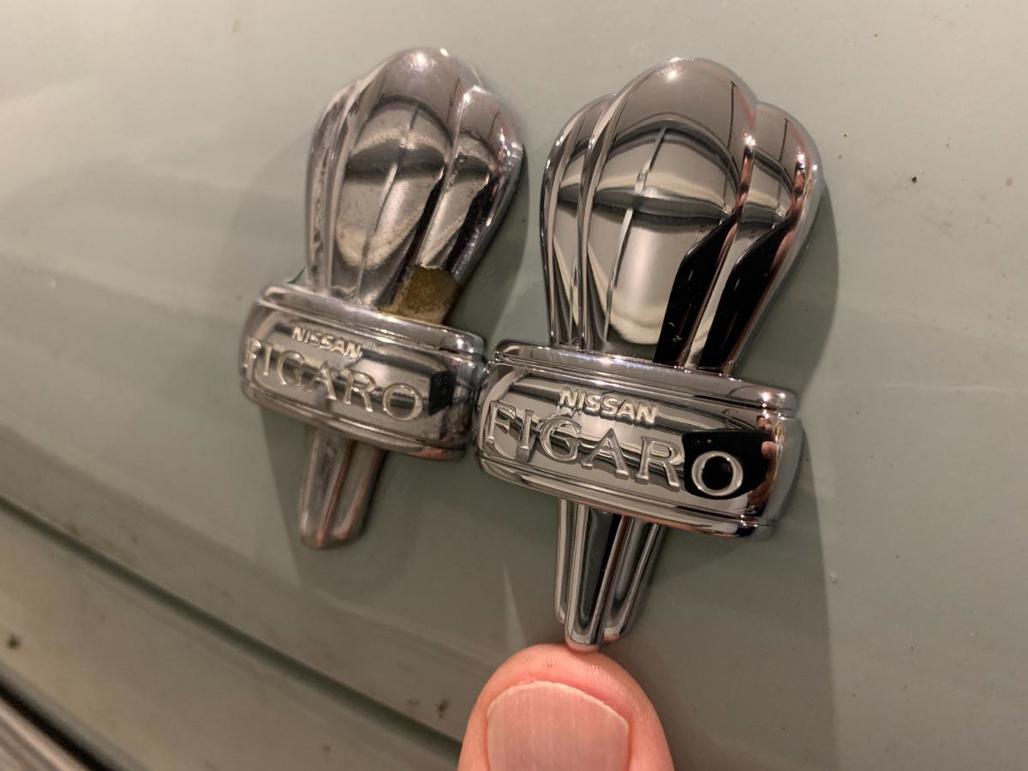 Of course, we just had to have these plates for our car, so ordered a pair of reproductions from The Figaro Shop in the UK, along with a new locking glovebox latch (a common breakage) and number of minor little fixes from new-old stock, still available in Japan.