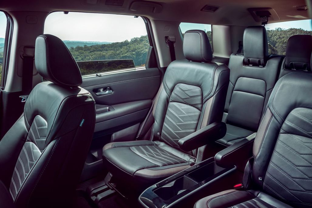 The 3rd row switches from real leather to synthetic, but it's nicely executed. There are ventilation outlets and cupholders each side back there, but the kids might be fighting over the right-hand seat in the back - that’s the only 3rd-row position that gets a USB charge port. As an aside, the $5k-cheaper Pathfinder Ti puts a bench in the 2nd row, making it an 8-seater.