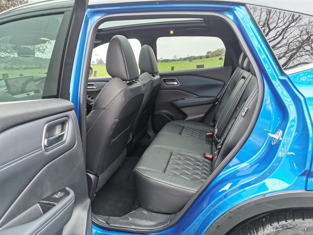 With eight-way electrically-adjustable front seats and a tilt adjustable steering wheel, getting comfortable in the Qashqai is a breeze. Visibility all around is good, just slightly compromised out of the rear due to the rear seat headrests. And while on the subject of rear seats, the head, shoulder and leg room is great for two, (with the third really needing to be a minor), and there’s a couple of USB-C points to power devices.