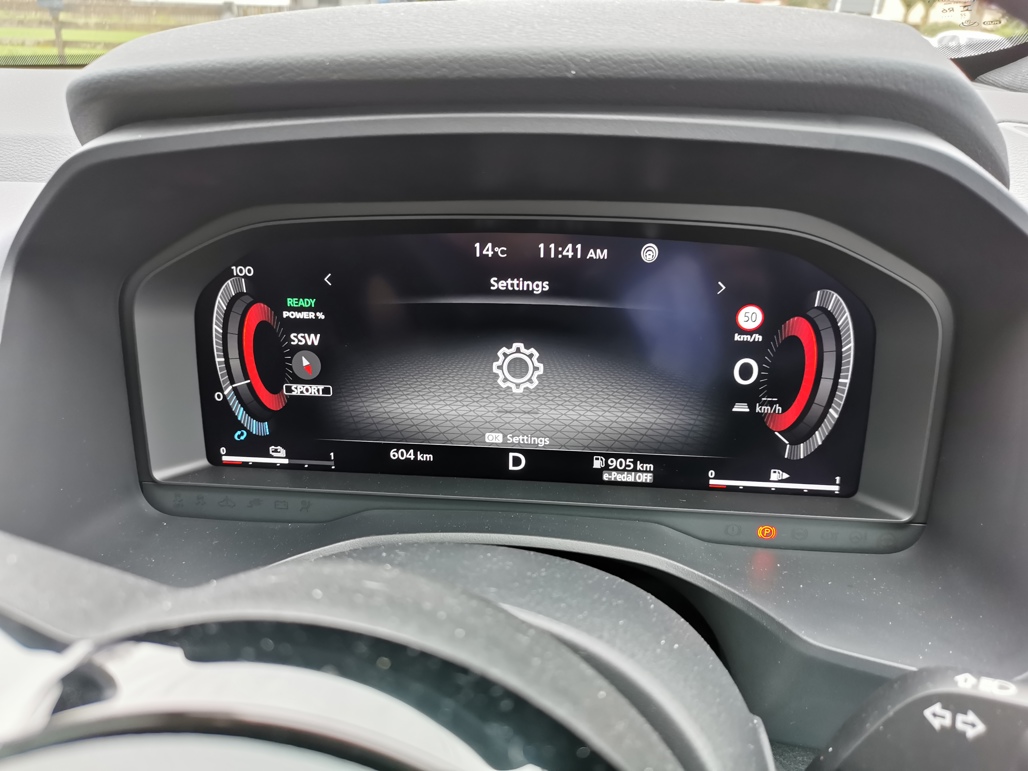 The Qashqai’s digital instrument cluster behind the steering wheel is as clear and easy to use as they come. There are two design styles on offer and a raft of data options available to truly personalise required information . One such image is of the SUV’s ePower energy flow, (engine to battery to wheels, and back again) and well worth talking about.