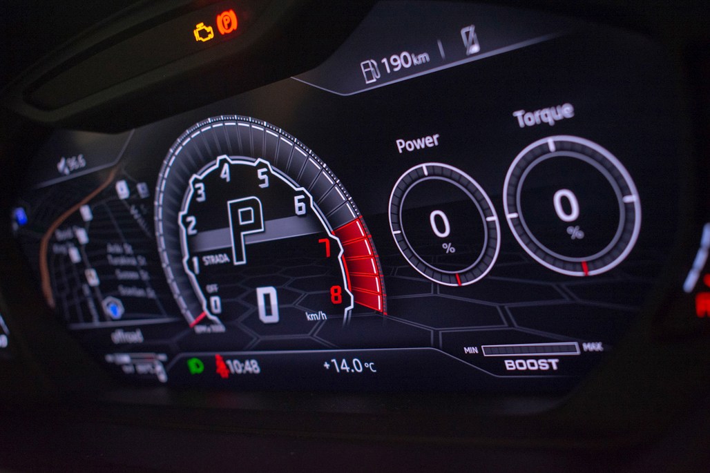 For those looking for a premium off-road experience this is a drive package that includes sand, mud and snow. That package is part of Lamborghini’s Adaptive Network Intelligent MAnagement (ANIMA) technology, which allows you to adapt to your driving needs. There’s the standard strada, sport for the motorway and my favourite, the corsa, that gives you track-like driving.