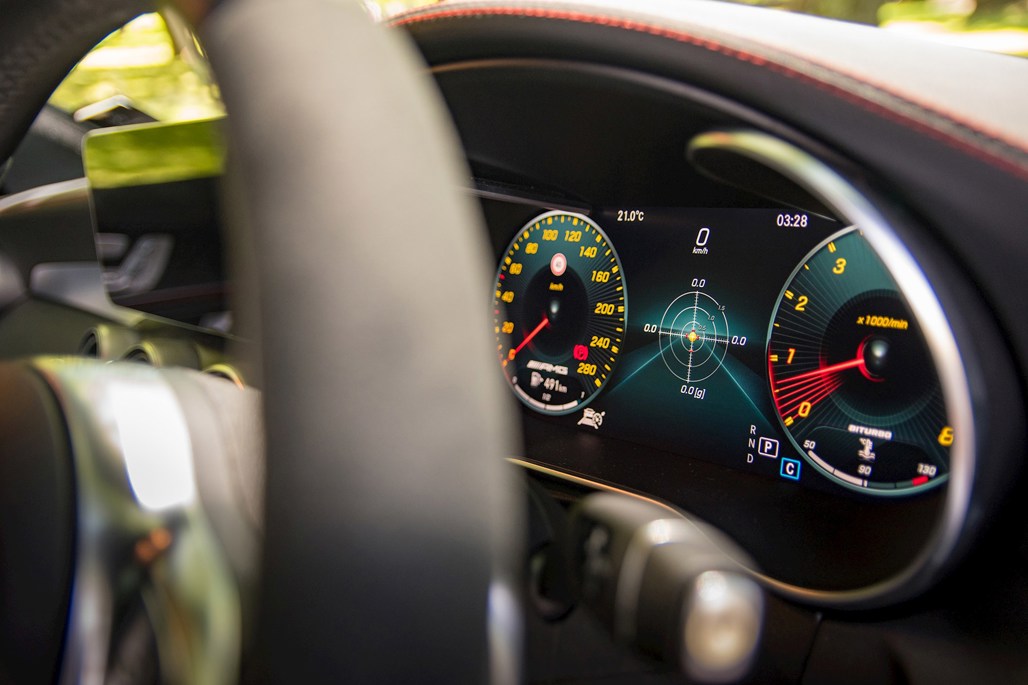 The luxury feel of the interior is also heightened by the AMG performance steering wheel in black nappa leather and what Mercedes calls “Dinamica” microfibre, a combination that works well, although whether the microfibre stands up to long-term use could be in question. Not only does the steering wheel have a flat bottom, the sides are almost straight, so it is practically a square wheel, if that makes sense. It doesn’t sound right but it works well on this model.