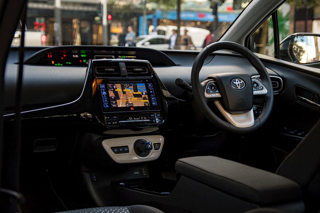 It still comes with a continuously variable transmission mated to the same 1.8-litre four-cylinder as the standard Prius — fuelled by liquefied dinosaurs and capable of developing 72kW and 142Nm all by itself. A secondary electric motor supplements that 1.8-litre to help achieve a total combined peak power output of 90kW.