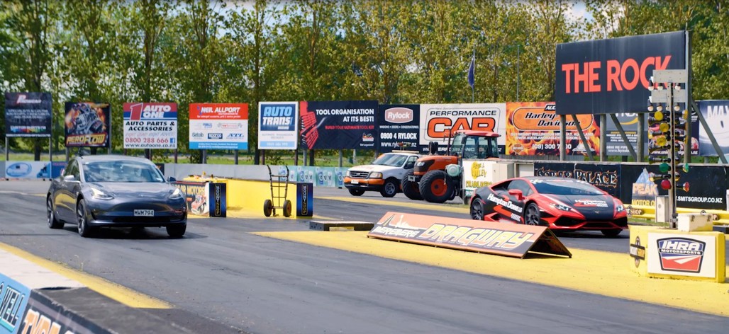 But can either Model 3 see off a Lamborghini Huracan over the quarter-mile?