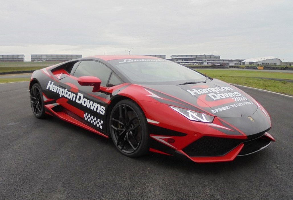 Owned by Hampton Downs for hot laps and ride experiences, the Huracan is all-wheel drive and running a mid-engined 5.2-litre V10, producing a fearsome 470kW and 600Nm through a seven-speed dual-clutch gearbox, and as good as 0-100km/h in 3.2 seconds and hitting 230km/h at Hampton Downs.