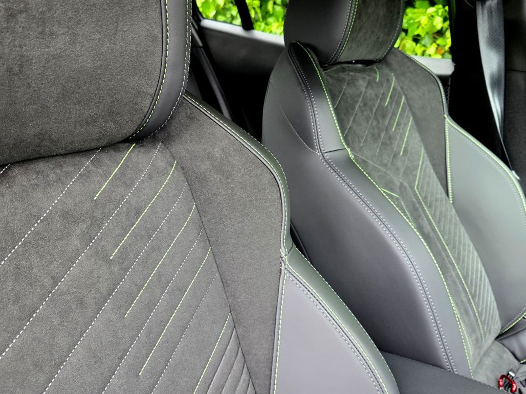 The GT cabin is all angles and bright green detailing; it’s fun and feels quite premium, albeit in a knowing, tongue-in-cheek way; get a load of the plastic “carbon” trim, for example.