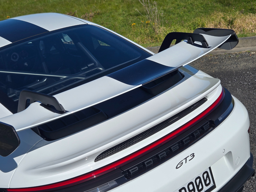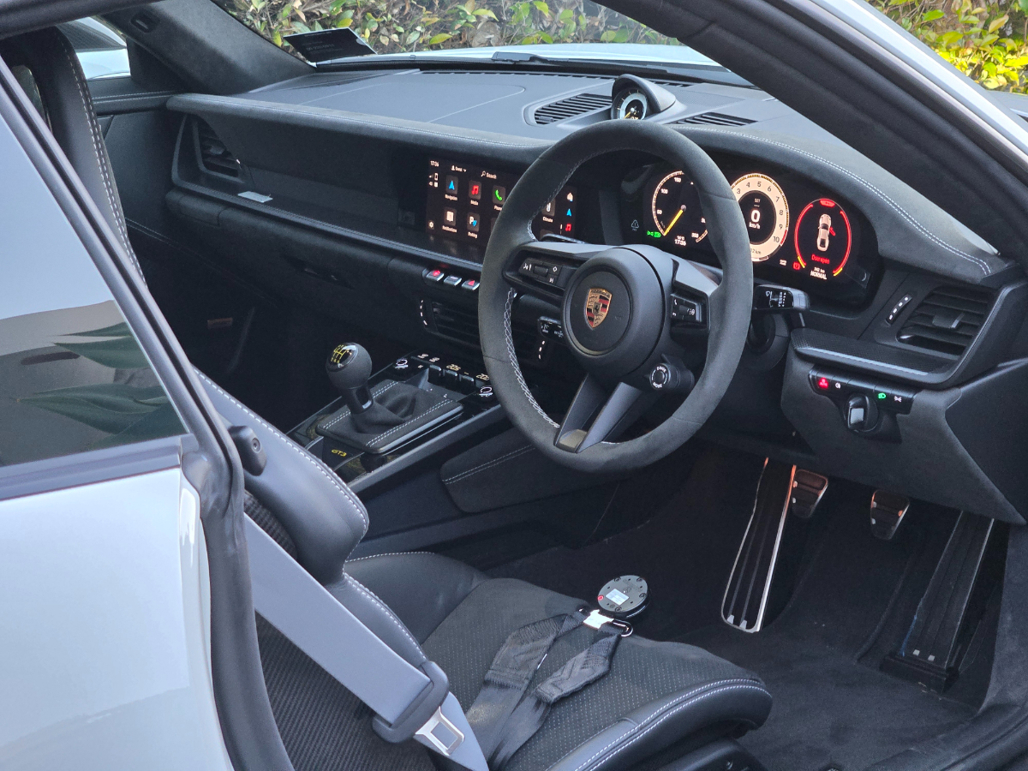 In fact, it’s worth pointing out at this stage that you can also have the GT3 in a Touring Package specification, including rear seats (a first for the model). It’s less aggressive looking, you can still have the manual and you can even add a Lightweight Package (albeit at an enormous extra cost of $66,510) that’s less motorsporty but still brings lots of CFRP. That’s a tempting bucket-list car.