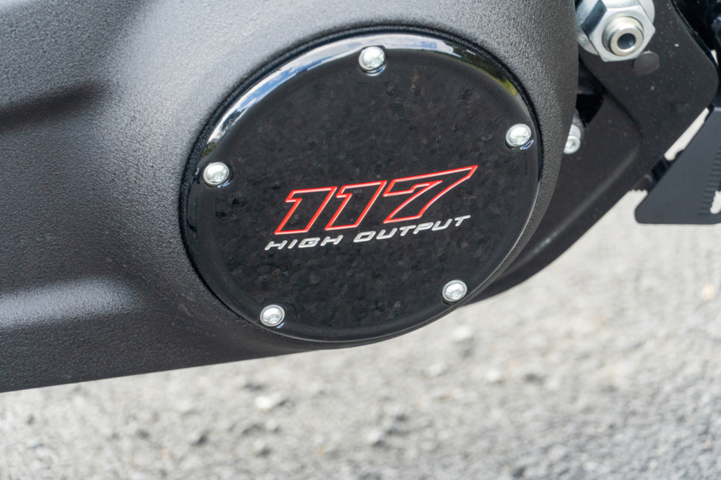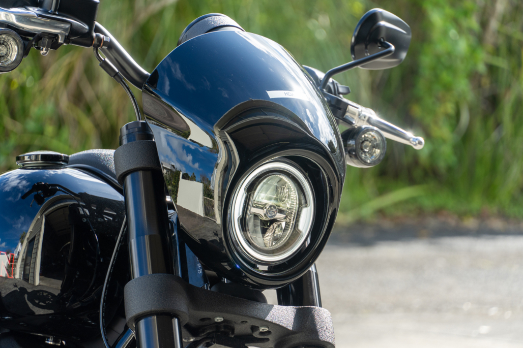 As for the test bike, it looks a total bad-ass in Vivid Black, which costs a more budget-friendly $320, and the colour sets the stage for raw, visceral performance of Harley’s new Euro 5+ version of the 1917cc V-twin engine.