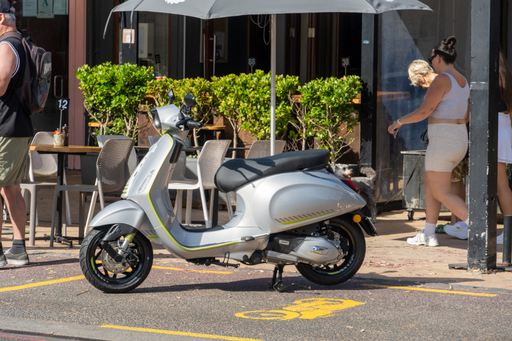 Cap it off with the Grey Entusiasta livery, with its day-glo green highlights, and you have a Vespa that immediately commands attention when parked outside a café.