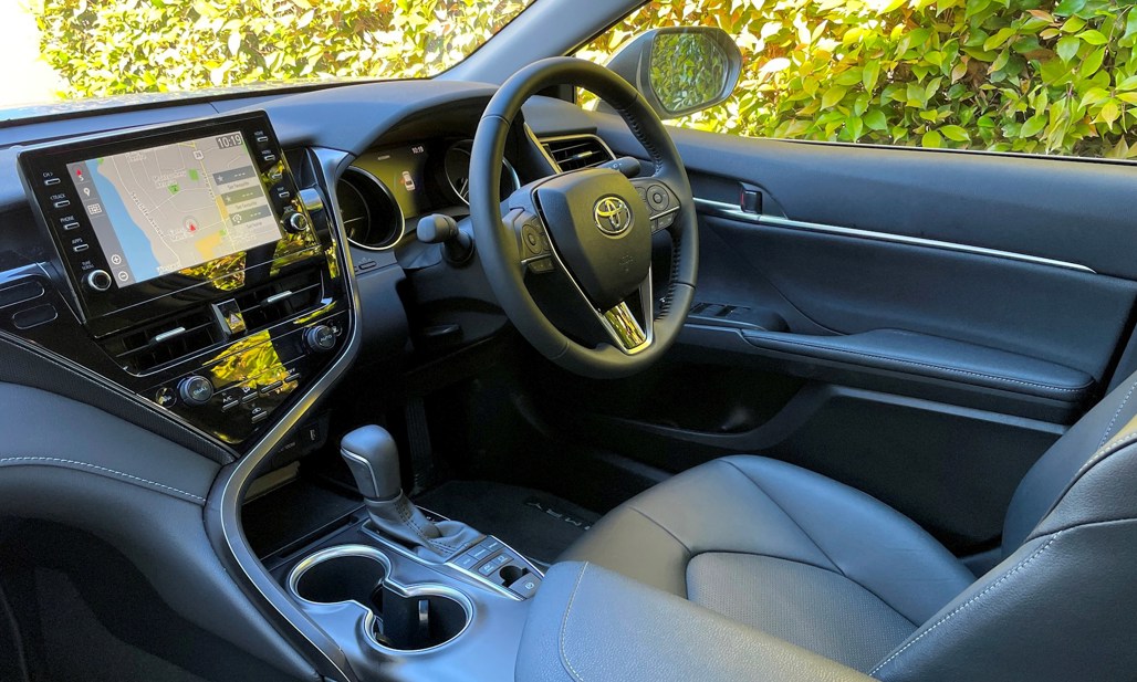 That low ride height will still be a shock to the system for many new-vehicle buyers these days, but the 4.9m-long Camry remains a spacious family vehicle. A sedan it may be, but there’s a lot of storage space up front, including a cavernous centre-console bin and a nifty sliding tray at the base of the centre console with another little bin underneath.