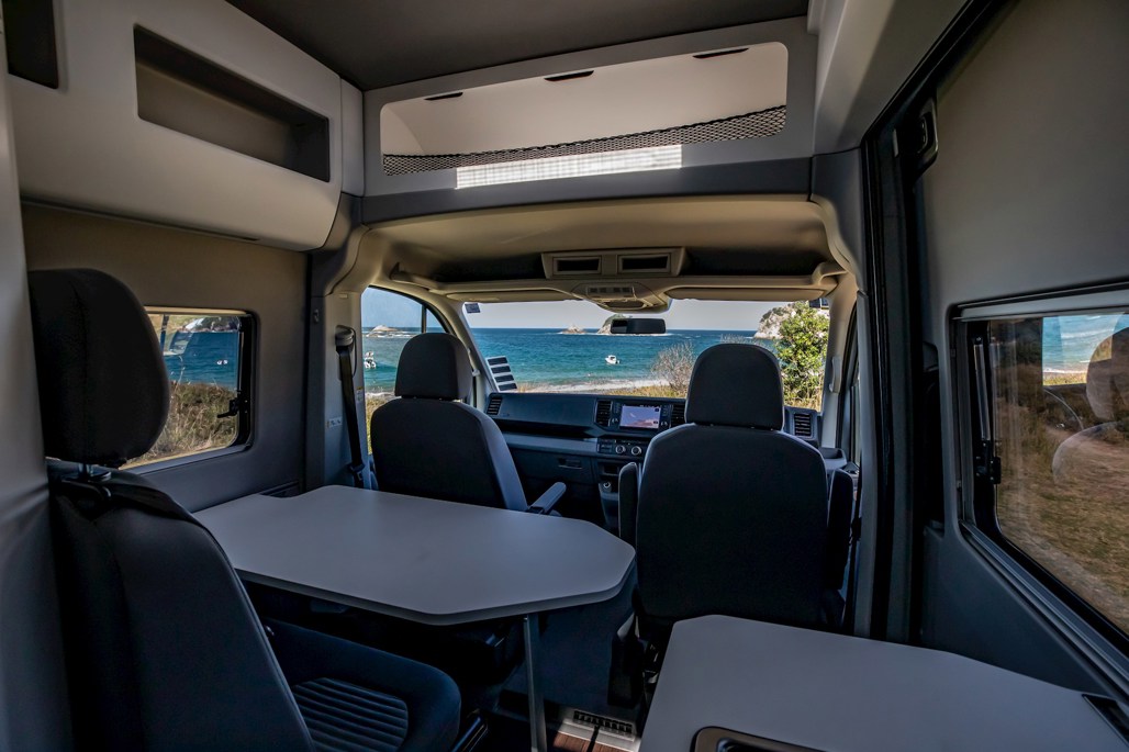 One of the things that sets the Grand apart from other campervans is that it isn‘t a chore to drive. It has a strong 130kW/410Nm turbo-diesel engine and 4Motion all-wheel drive for a start. It’s three metres tall, so you don’t throw it around, but it’s impressively stable at speed, thanks partly to a plethora of driver aids, including Cross Wind Assist, which uses the electronic power steering and stability control to automatically resist body movements from big gusts.