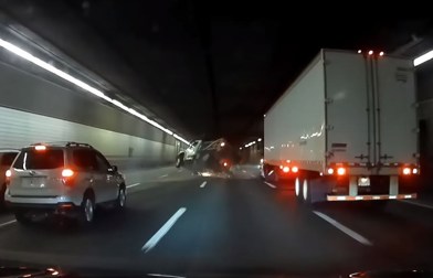 Icon T News Watch the terrifying moment truck flips in busy tunnel Watch the terrifying moment truck flips in busy tunnel