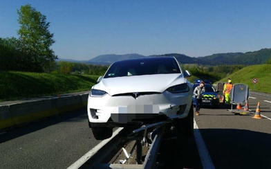 Icon T News Tesla Model X left balancing precariously on guard rail after high-speed collision Tesla Model X left balancing precariously on guard rail after high-speed collision